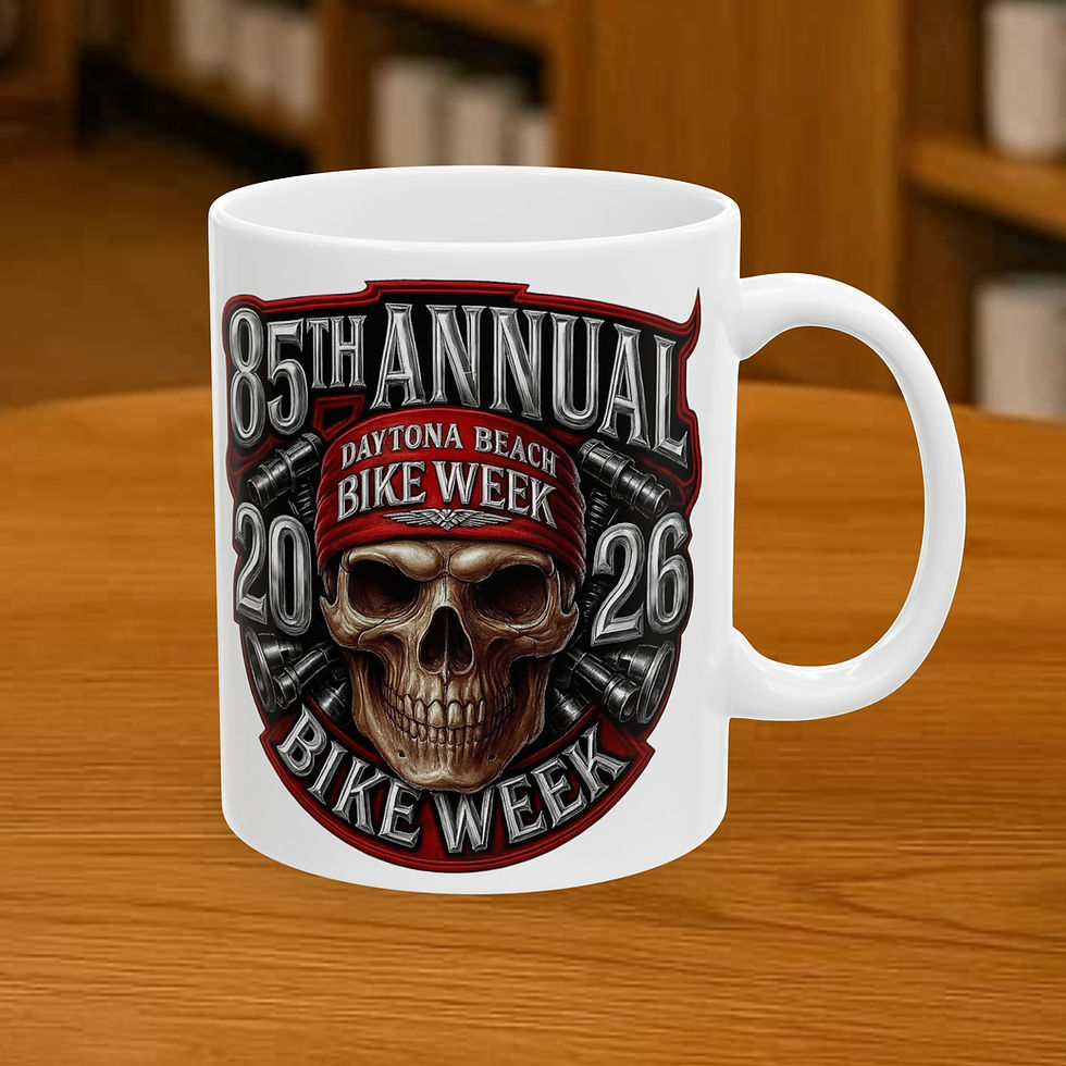 85th Annual Bike Week Daytona Beach 2026 coffee mug, motorcycle rally souvenir