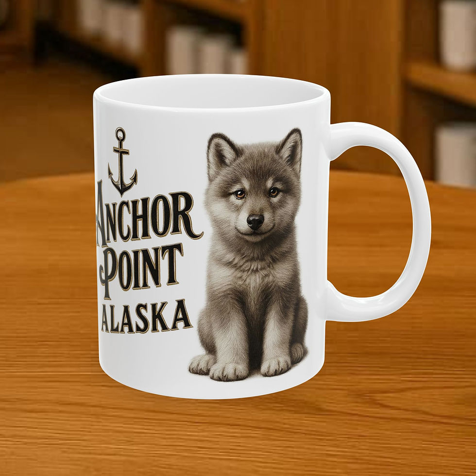 Anchor Point Alaska Wolf cub coffee mugs, Novelty coffee cups, Alaska mugs